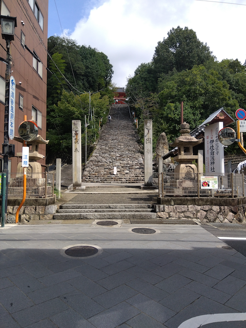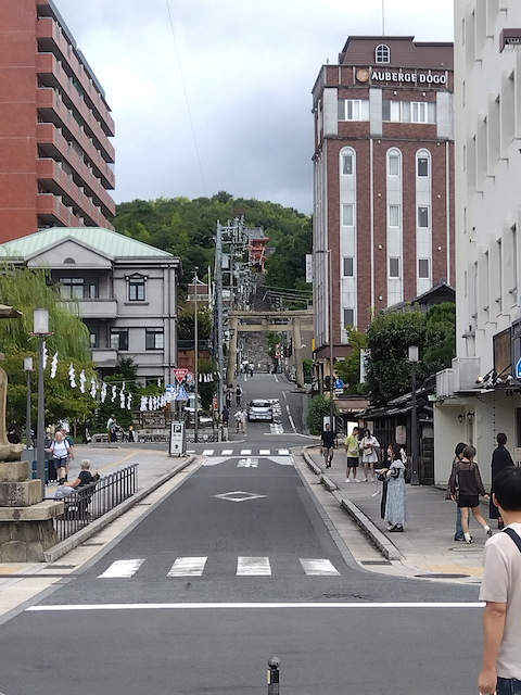(1) 道後温泉駅から鳥居に向かって歩きます. (上り坂です)